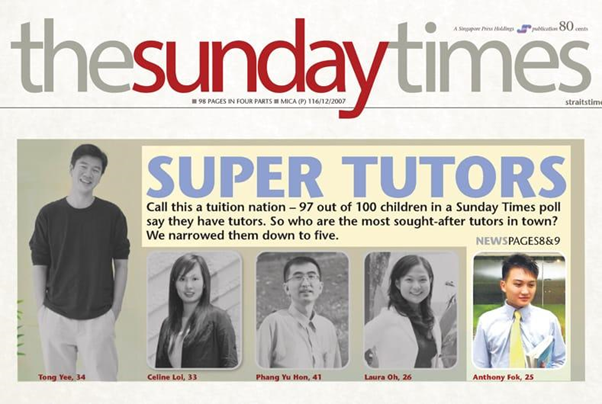 – Featured on ‘The Straits Times’ newspapers as a “Super Tutor who earns at least $1M a year”.